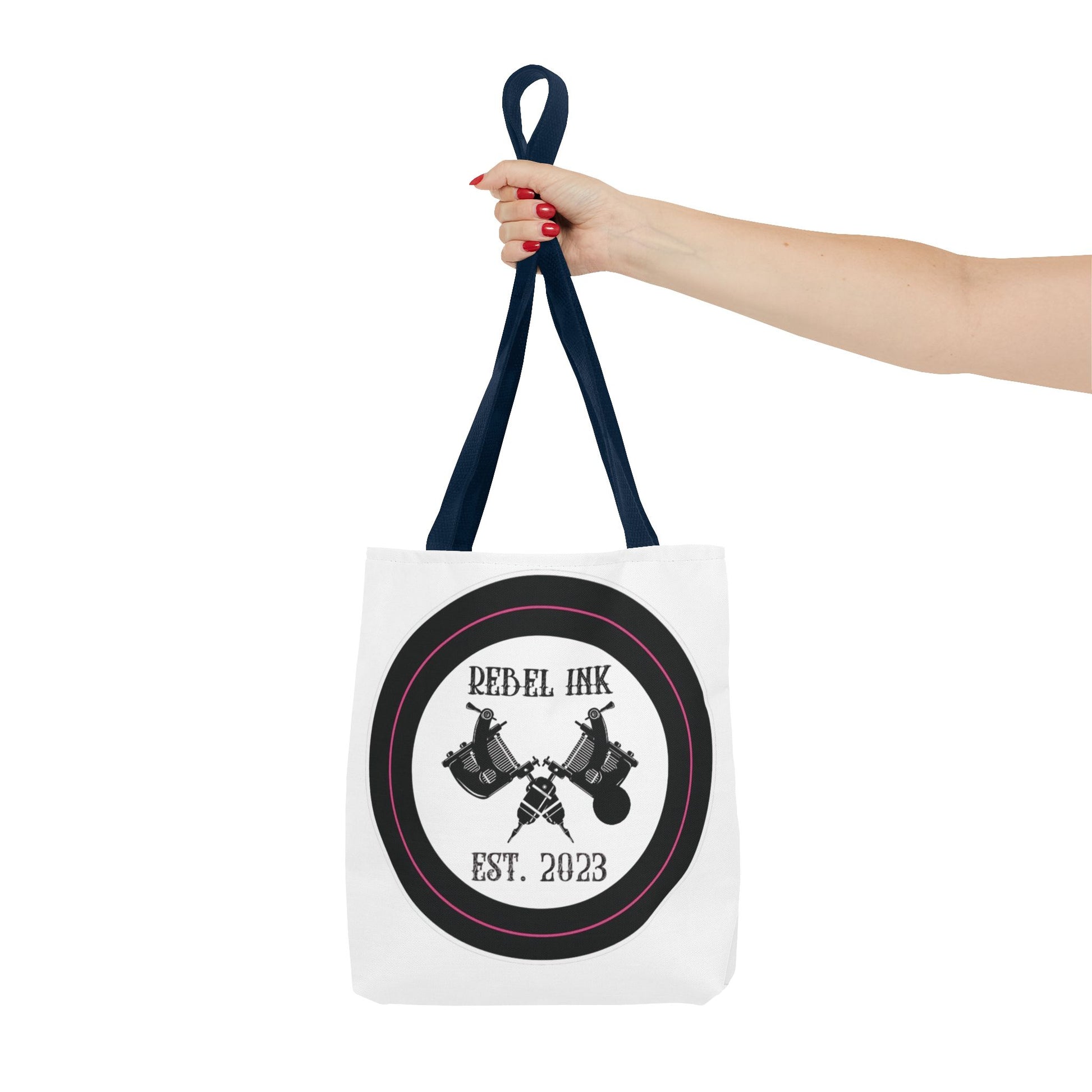 Cool tote bag perfect for everyday use, made with a 100% polyester body for durability and strength. Features seamless black inner stitching, reinforced stitching on handles, boxed corners for extra room, and available in 5 handle color options. Ideal for those looking for a stylish and practical tote bag.