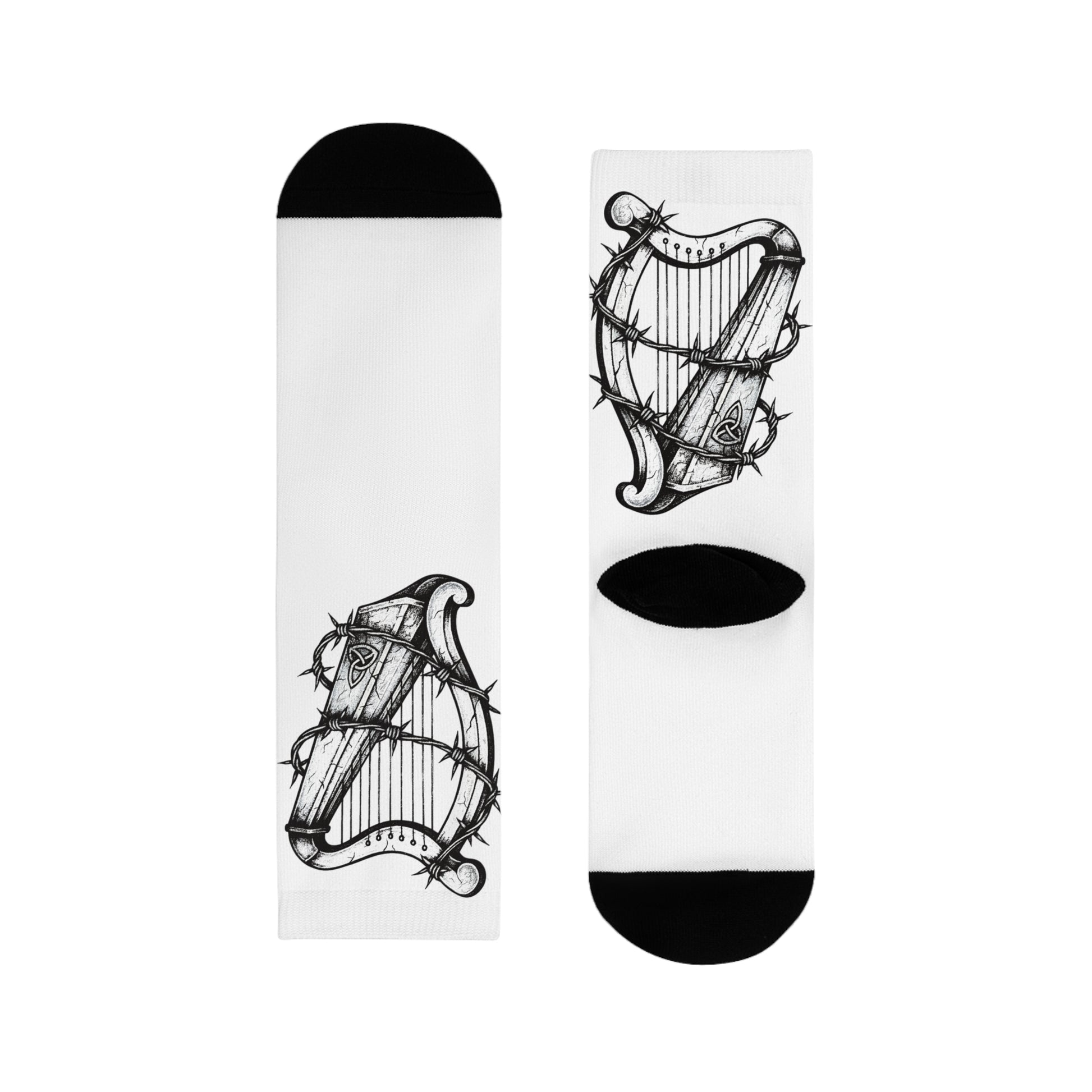 Rebellious Harp Barbed-Wire Crew Socks — Sublimation Musician Gothic Socks
